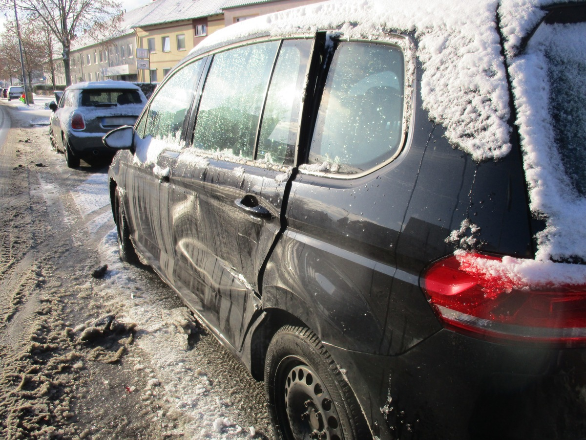 Ein unbekannter Fahrzeugführer hat beim Vorbei- oder Rückwärtsfahren den Touran dermaßen stark beschädigt, dass sich die hintere linke Tür auch nicht mehr öffnen ließ. Anschließend hat er sich, ohne um den Schaden zu kümmern, aus dem Staub gemacht. Der angerichtete Schaden dürfte sich nach ersten Schätzungen auf mindestens 4.000 Euro belaufen.
