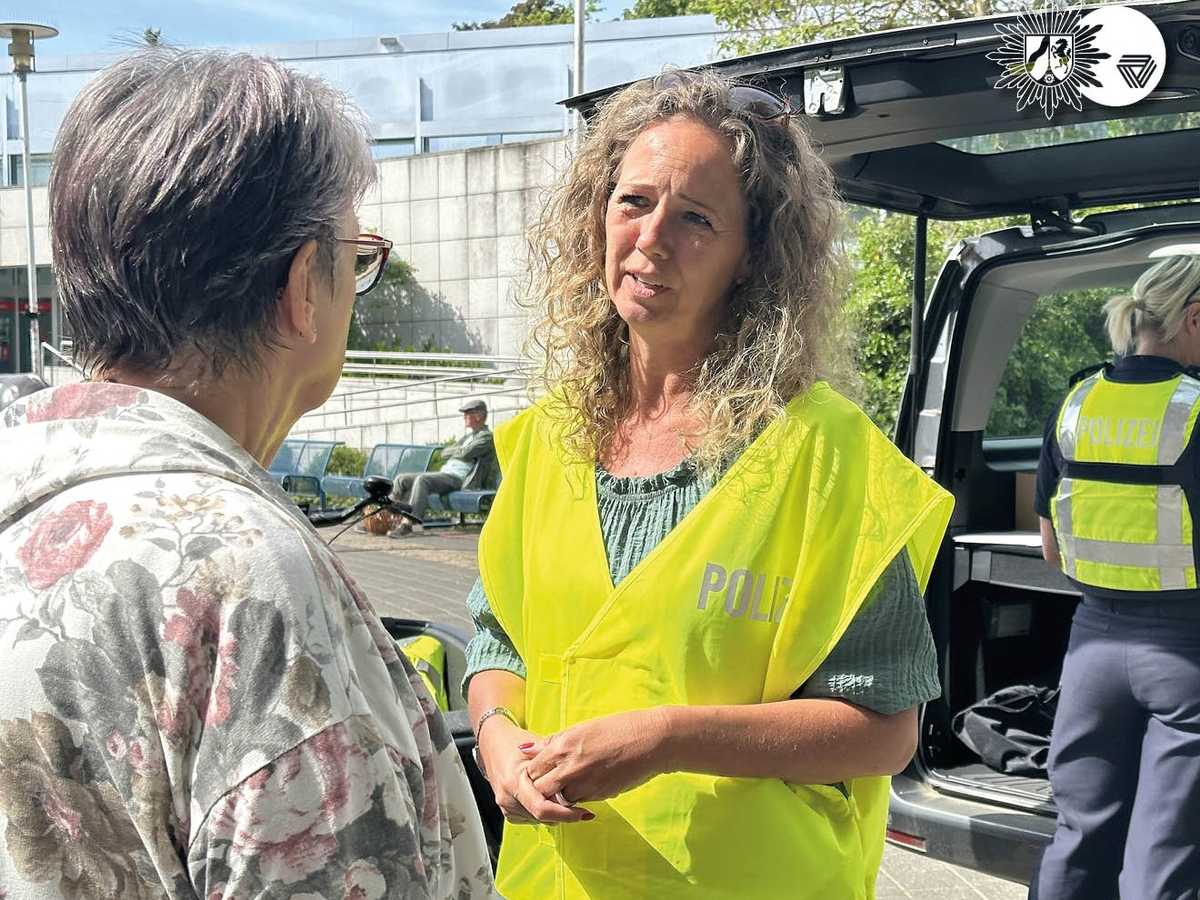 Kreis Viersen - Das Team der KriminalprĂ€vention der Polizei Viersen ist auch in diesem Jahr wieder auf kreisweiten WochenmĂ€rkten unterwegs. Unter dem Motto "Haben Sie Fragen? Wir haben die Antworten" stehen die Beamtinnen und Beamten interessierten BĂŒrgerinnen und BĂŒrgern beratend zur Seite. Gemeinsam mit den Kolleginnen und Kollegen des Bezirksdienstes informieren wir zu aktuellen PrĂ€ventionsthemen wie Fahrraddiebstahl, Diebstahl von und aus Kraftfahrzeugen, Einbruchschutz, Taschendiebstahl sowie Betrugsmaschen, insbesondere zum Schutz Ă€lterer Menschen. SelbstverstĂ€ndlich beantworten wir auch alle anderen sicherheitsrelevanten Fragen, die Sie mitbringen. Unser Team kommt mit dem Mercedes Vito direkt auf den jeweiligen Wochenmarkt - unkompliziert, offen und bĂŒrgernah. Los geht es am Freitag, 22. August, von 10 bis 12 Uhr auf dem Buttermarkt in Kempen. Alle weiteren Termine und Standorte finden Sie unter: https://viersen.polizei.nrw/artikel/infostand-der-kriminalpraevention Kommen Sie vorbei - wir freuen uns auf das GesprĂ€ch mit Ihnen! /jk (803)