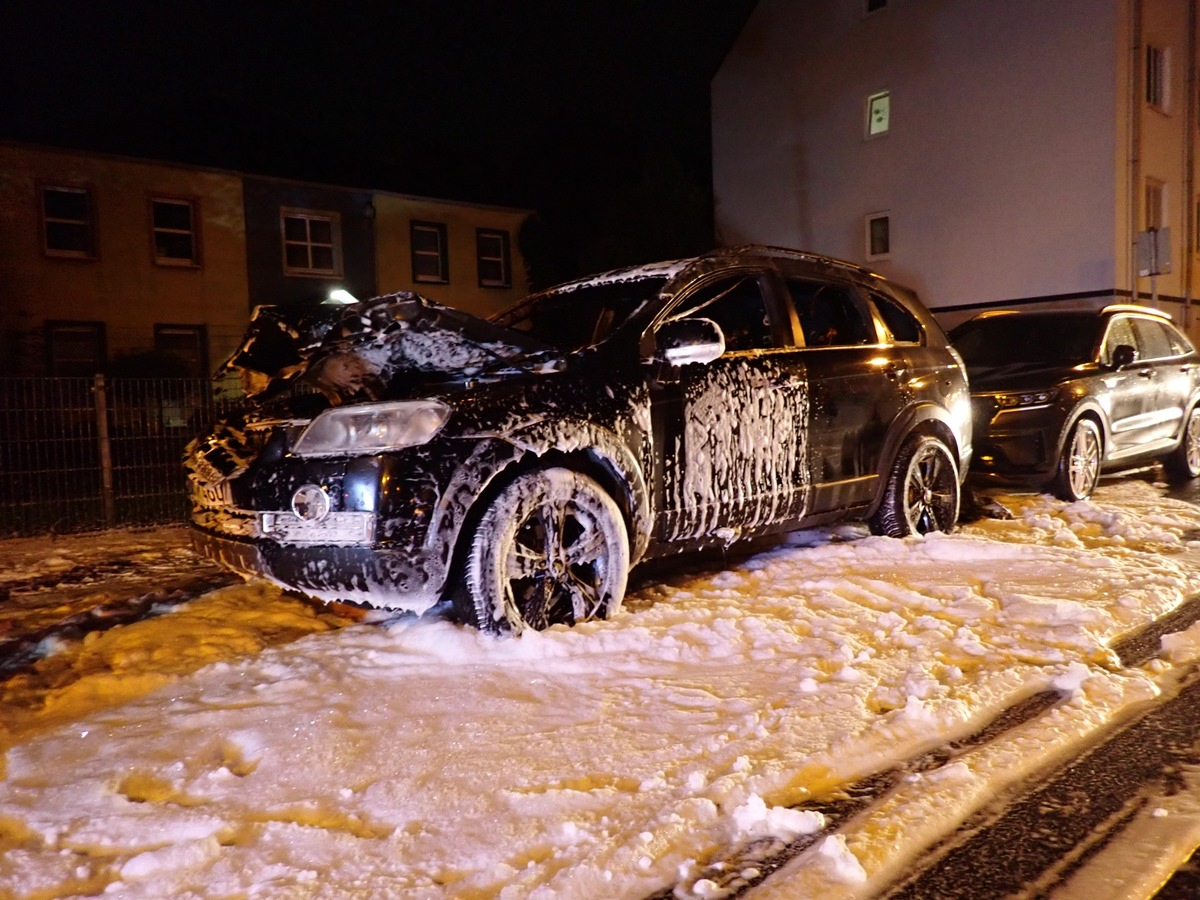 Gegen 5:30 Uhr stand auf der FischerstraĂe der Pkw eines Zeugen der Auseinandersetzungen in Flammen. Die Feuerwehr löschte den Brand - niemand wurde verletzt. Ermittlungen ergaben, dass es sich bei dem Chevrolet um das Fahrzeug eines Zeugen der vorherigen gefĂ€hrlichen Körperverletzung handelt. Es besteht der Verdacht der Brandstiftung. Das Auto wurde sichergestellt.
