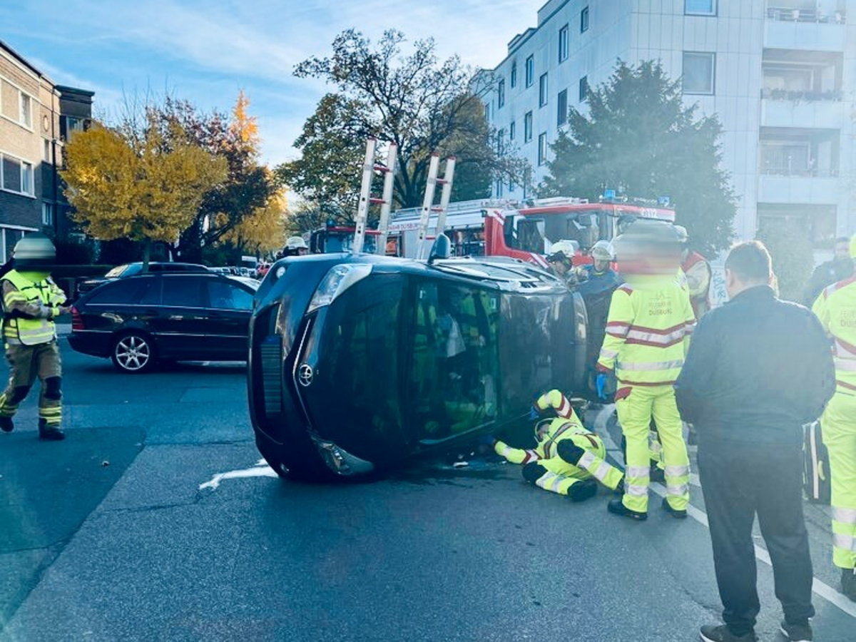 Wanheimerort: Unfall im Kreuzungsbereich - Auto kippt auf die Seite