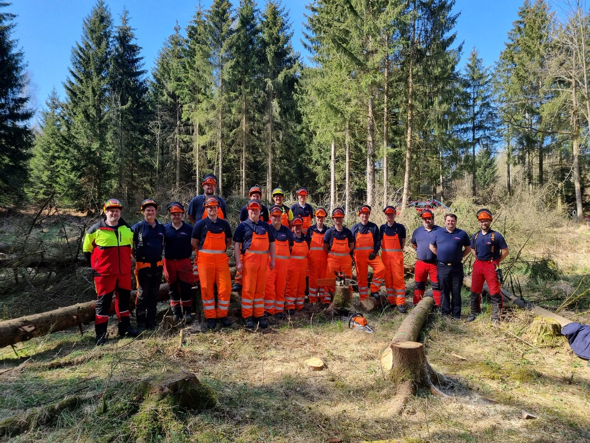 13.04.2025 - 15:34:01 | presseportal.deDer Lehrgang "Technische Hilfe - Wald" umfasst in den zwei Modulen 30 Stunden in Theorie und Praxis. Neben den theoretischen Grundlagen zur persönlichen Schutzausrüstung, wurde auch der sichere Umgang mit der Motorsäge geschult. Die Unfallverhütung bei Arbeiten mit der Motorsäge hat hier oberste Priorität.