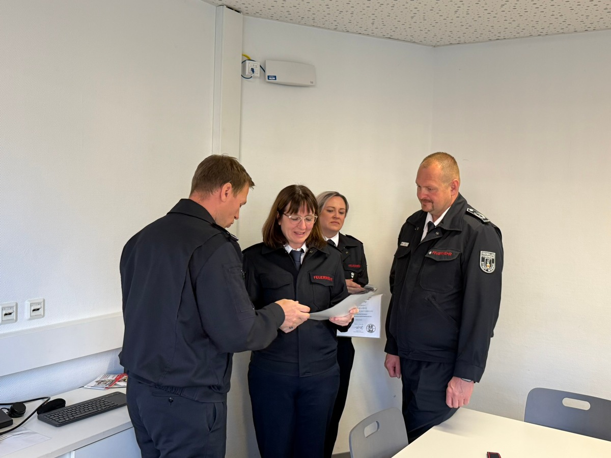 An der Veranstaltung nahmen neben der Leitung der Feuerwehr auch das zukünftige Betreuerteam der Kinderfeuerwehr teil. Ebenfalls anwesend waren die Dezernentin für Feuerwehr, Stefanie Benting, die Ordnungsamtsleiterin Petra Jäger sowie die Einheitsführer der Feuerwehr Werne.