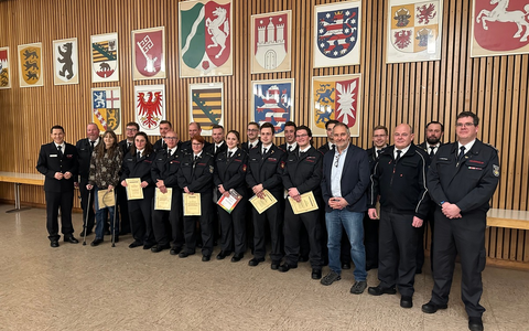Sichtlich ergriffen von der soeben erlebten Verleihung dankte Ralf für die Auszeichnung. Zugleich richtete er seinen Dank an alle Anwesenden, ohne deren Unterstützung ihm die Verleihung nicht möglich gewesen wäre. Im Anschluss nahm dann Bürgermeister Hans-Günter Draht noch eine verdiente Ehrung eines langjährigen Kameraden vor.