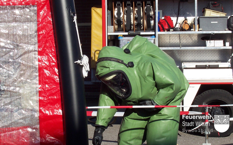 Ein Trupp ging in Chemieschutzanzügen zu Messung vor.
