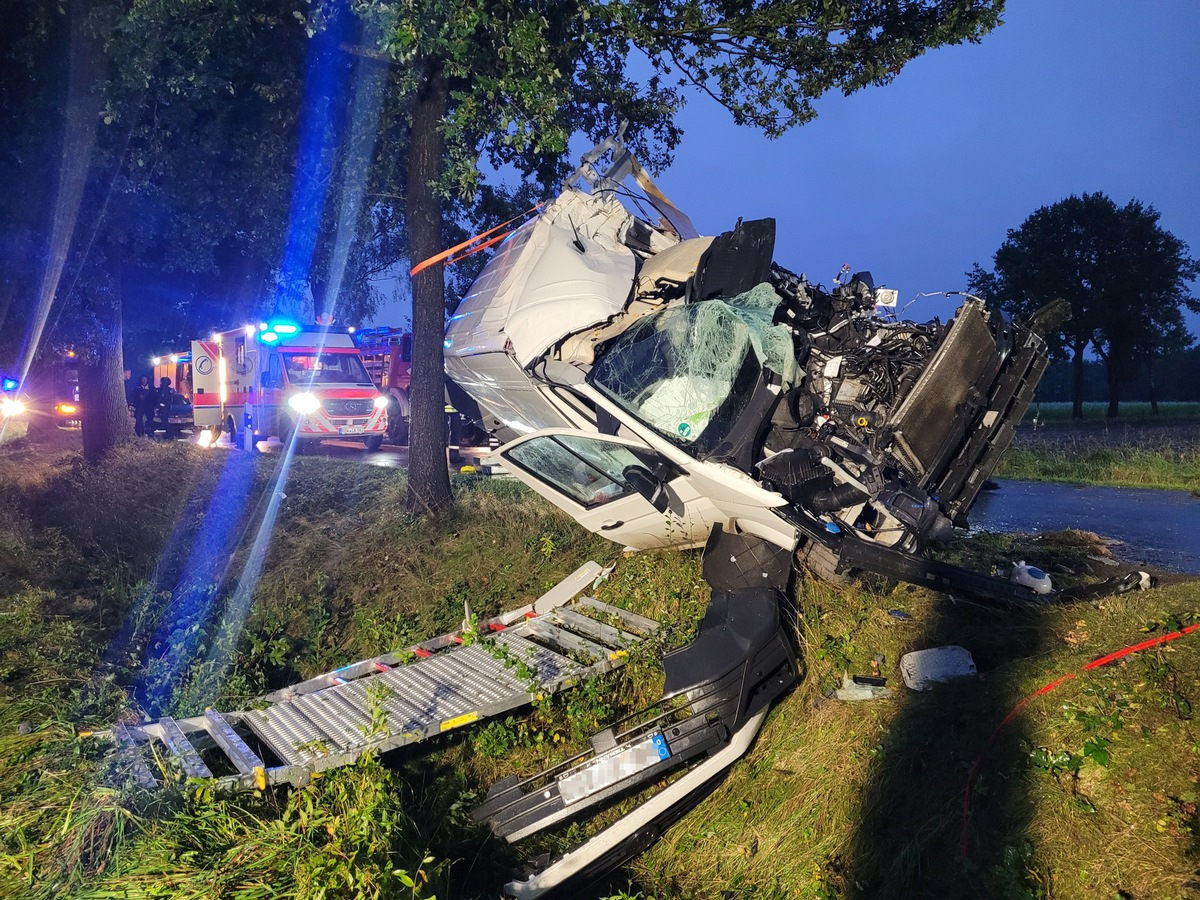 In Absprache mit dem Rettungsdienst wurde der schwerverletzte Fahrer, mittels hydraulischem Rettungsgerät, über die Beifahrerseite des VW Crafter befreit. Trotz aller Rettungsversuche erlag der Fahrer noch im Rettungswagen seinen schweren Verletzungen.