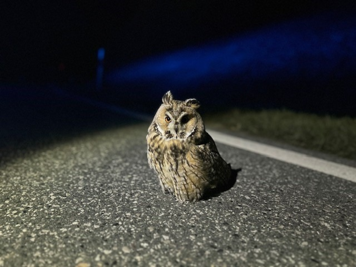 Wörrstadt - Am 10.03.2024, gegen 01:39 Uhr fiel Beamten der Polizeiinspektion Alzey, während der Streifenfahrt, ein kleines, fedriges Tier auf der Fahrbahn der L 414 in Wörrstadt auf. Die Beamten kehrten nochmals um und konnten eine kleine Waldohreule sitzend auf dem Asphalt feststellen. Beim Herantreten machte die kleine Eule keinen Anschein wegfliegen zu wollen, was die Beamten vermuten ließ, dass der kleinen Eule womöglich etwas fehlt. Es wurde umgehend Kontakt mit einer örtlich ansässigen Tierrettung aufgenommen, welche sich trotz später Stunde bereit erklärt hat, vor Ort zu erscheinen. Bis zum Eintreffen der Tierrettung wurde die Eule durch die Beamten wohlwollend bewacht und abgesichert. Abschließend wurde die im Verlauf des Einsatzes getaufte Eule "Hugo" durch die Tierrettung liebevoll in Obhut genommen.