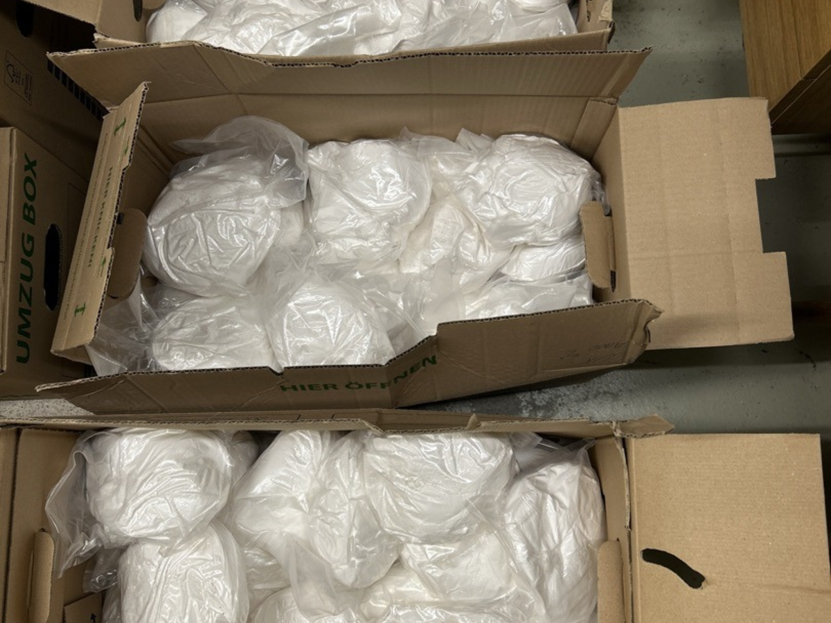 Die sich anschließenden Ermittlungen richten sich gegen die mutmaßlichen Empfänger der sichergestellten Lieferung, fünf Tatverdächtige im Alter von 36 bis 44 Jahren. Die in den vergangenen Tagen durchgeführten Durchsuchungsmaßnahmen in Frankfurt am Main, Langen, im Kreis Groß-Gerau und im Main-Taunus-Kreis führten zur Sicherstellung von weiteren Beweismitteln, wie Handys und Laptops. In durchsuchten Lagerräumen in Langen konnten zudem rund 70 Kilogramm Amphetamin sowie 60 Eimer mit einer rauschgiftverdächtigen Flüssigkeit sichergestellt werden, die nun kriminaltechnisch untersucht werden. Beim Abtransport der Beweismittel unterstützte das Technische Hilfswerk, Ortsverband Neu-Isenburg.