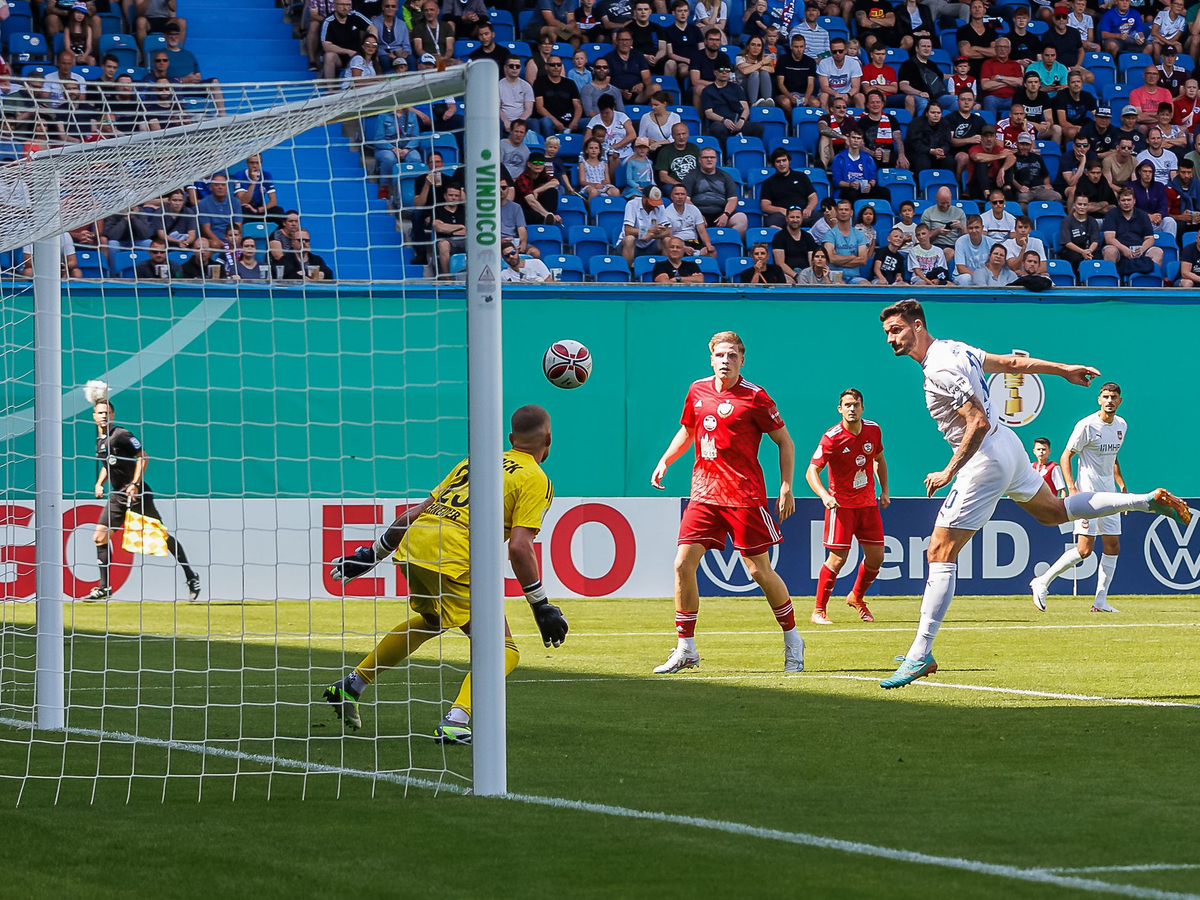 Danach legte der Landespokalsieger aus Mecklenburg-Vorpommern etwas den Respekt ab, startete den ein oder anderen Gegenangriff und wehrte sich in der Defensive im Rahmen der Möglichkeiten. Trotzdem musste FCH-Schlussmann Kevin Müller an alter Wirkungsstätte nicht einmal ernsthaft eingreifen. Auf der anderen Seite erhöhte Neuzugang Marvin Pieringer per Kopfball für die Heidenheimer bis zur Halbzeitpause auf 5:0 (38.).