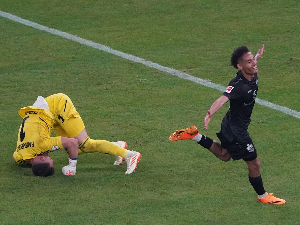 Wie fragil das Hamburger Glück aber war, zeigte sich fast unmittelbar im Anschluss, als der im Hinspiel starke Chris Führich nur das Außennetz traf (7.). Und noch viel mehr, als Serhou Guirassy artistisch aus der Drehung den vermeintlichen Ausgleich erzielte (17.). Der Treffer zählte aber wegen einer vorausgegangenen Abseitsstellung auf Höhe der Mittellinie nicht.