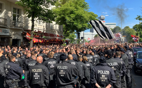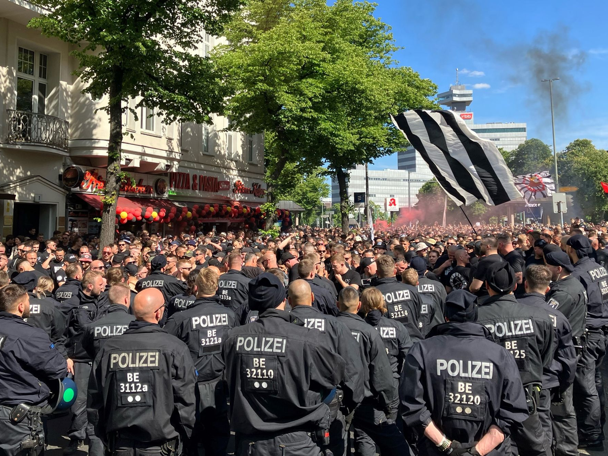 03.06.2023 - 17:23:25 | dpa.deTausende Fans von Eintracht Frankfurt sind am Nachmittag vom Theodor-Heuss-Platz zum DFB-Pokalfinale im Berliner Olympiastadion gezogen. Dabei blieb es friedlich, wie ein Sprecher der Berliner Polizei der dpa sagte. Lediglich ein paar Nebeltöpfe seien gezündet worden. Rund 3000 Frankfurter hätten an dem Fanmarsch teilgenommen.