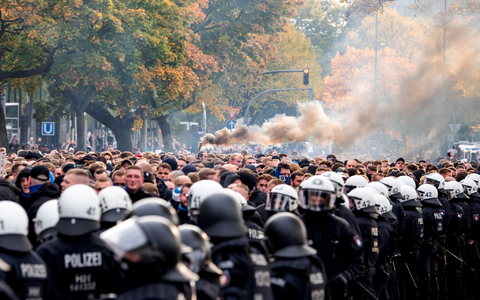 Der Vorwurf an die Polizei: «Mit diesem Gewaltexzess wollte man vor der EM 2024 die Muskeln spielen lassen.» Am vergangenen Wochenende protestierten Fans in etlichen Stadien von der Bundesliga bis zur 3. Liga mit scharf formulierten Spruchbändern gegen Polizeigewalt und für ein Verbot von Pfefferspray in Stadien.