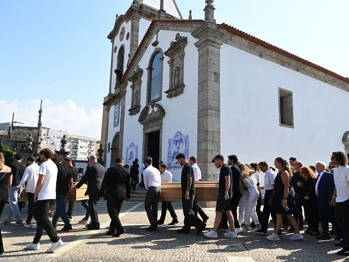 In der kleinen Kirche ihres Heimatortes Gondomar in der Nähe von Porto fanden nur wenige Trauergäste aus dem engsten Kreis Platz. Viele weitere Menschen warteten in stiller Andacht und Trauer auf dem Platz vor der Kirche. Zum Ende der Trauerfeier wurden die beiden schlichten Holzsärge zu Glockengeläut aus der Kirche getragen. Priester führten den Trauerzug zum Friedhof an. Auf Bildern war dabei auch Diogo Jotas Ehefrau Rute Cardoso zu sehen. Auf dem Friedhof direkt neben der Kirche hatte bereits eine größere Menschenmenge gewartet, um der Beisetzung in einiger Entfernung beizuwohnen.