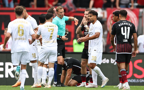 Nürnbergs Ahmet Gürleyen hatte früh die Rote Karte wegen einer Notbremse (11.) gesehen, doch auch die Gäste dezimierten sich noch vor der Pause selbst: Hyun-Ju Lee sah wegen wiederholten Foulspiels die Gelb-Rote Karte (40.). Nach einer weiteren Ampelkarte gegen den früheren Nürnberger Martin Angha (85.) beendete Wehen Wiesbaden das Spiel nur zu neunt.