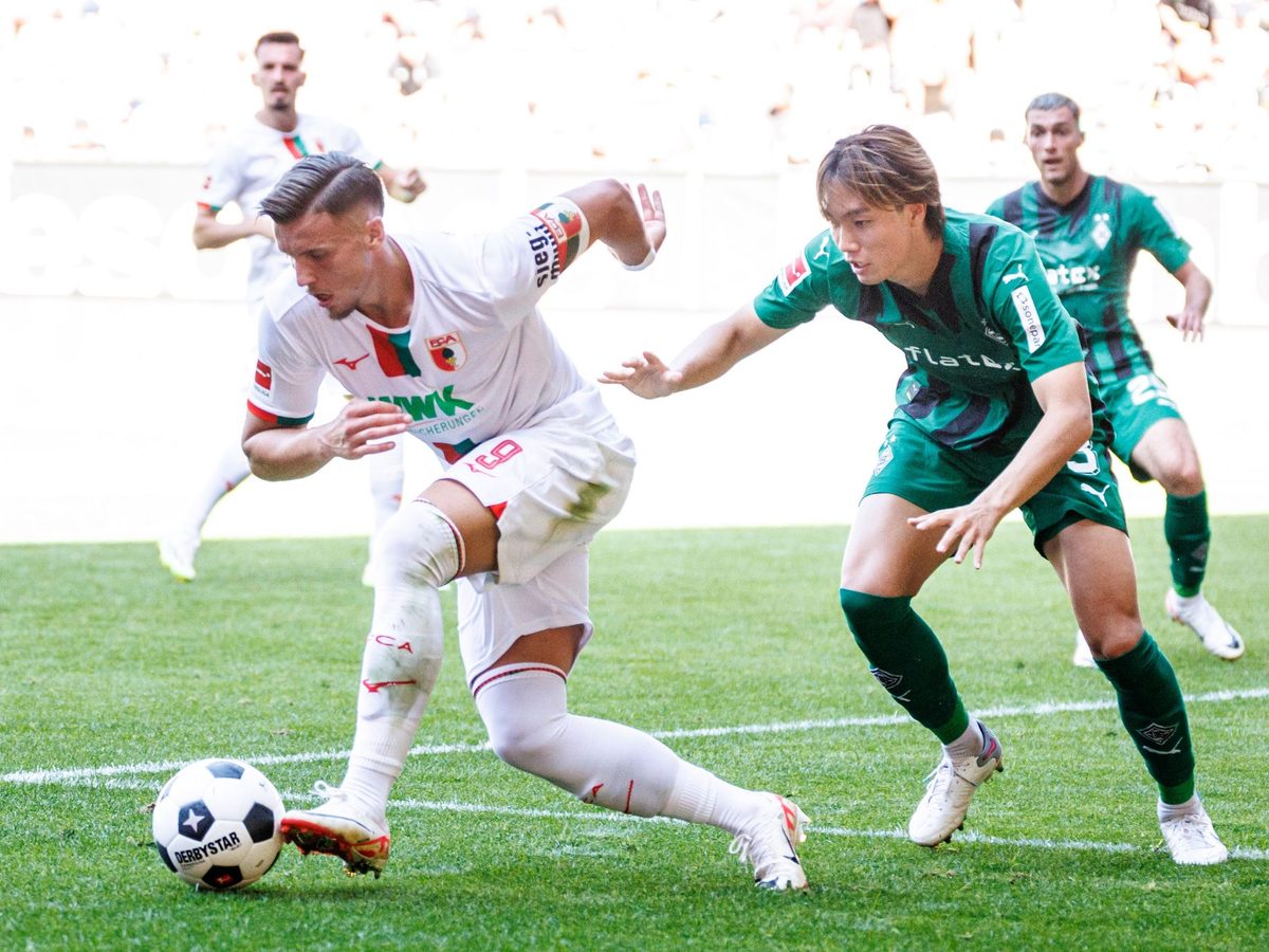 FĂŒr die Gladbacher trafen zunĂ€chst Ko Itakura (13.) und Tomas Cvancara (27.), ehe Elvis Rexhbecaj (29.) den Anschluss fĂŒr die Gastgeber wiederherstellte. Auch auf das dritte Gladbacher Tor durch Nathan Ngoumou (37.) hatte Augsburg mit dem Treffer von Maximilian Bauer (41.) eine schnelle Antwort. Sven Michel (45.+7) erzielte per Foulelfmeter sogar vor der Pause noch den Ausgleich. RubĂ©n Vargas (76.) schien die Partie endgĂŒltig gedreht zu haben, doch Cvancara per Foulelfmeter (90.+7) sorgte spĂ€t wieder fĂŒr den Ausgleich.