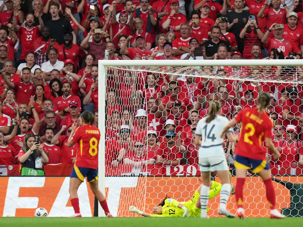«Time to move mountains», hatten die lautstarken Schweizer Fans auf ein Plakat gepinselt und die Botschaft mit einer rot-weißen Choreo aufgehübscht. Bis der erste Berg versetzt war, dauerte es nicht lange: Caldentey schoss einen Foulelfmeter flach links am Schweizer Tor vorbei. Ein kollektiver Jubelschrei jagte durch Wankdorf. Zuvor war die Fehlschützin von der Frankfurterin Nadine Riesen im Strafraum ziemlich plump umgetreten worden.