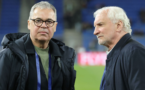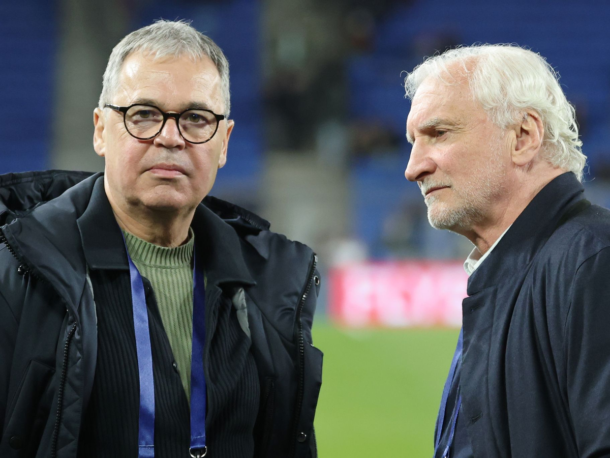 • Andreas Rettig (l.) und Rudi Völler (r.) stehen vor einem LĂ€nderspiel auf dem Platz (Archivbild) - Foto: Christian Charisius/dpa