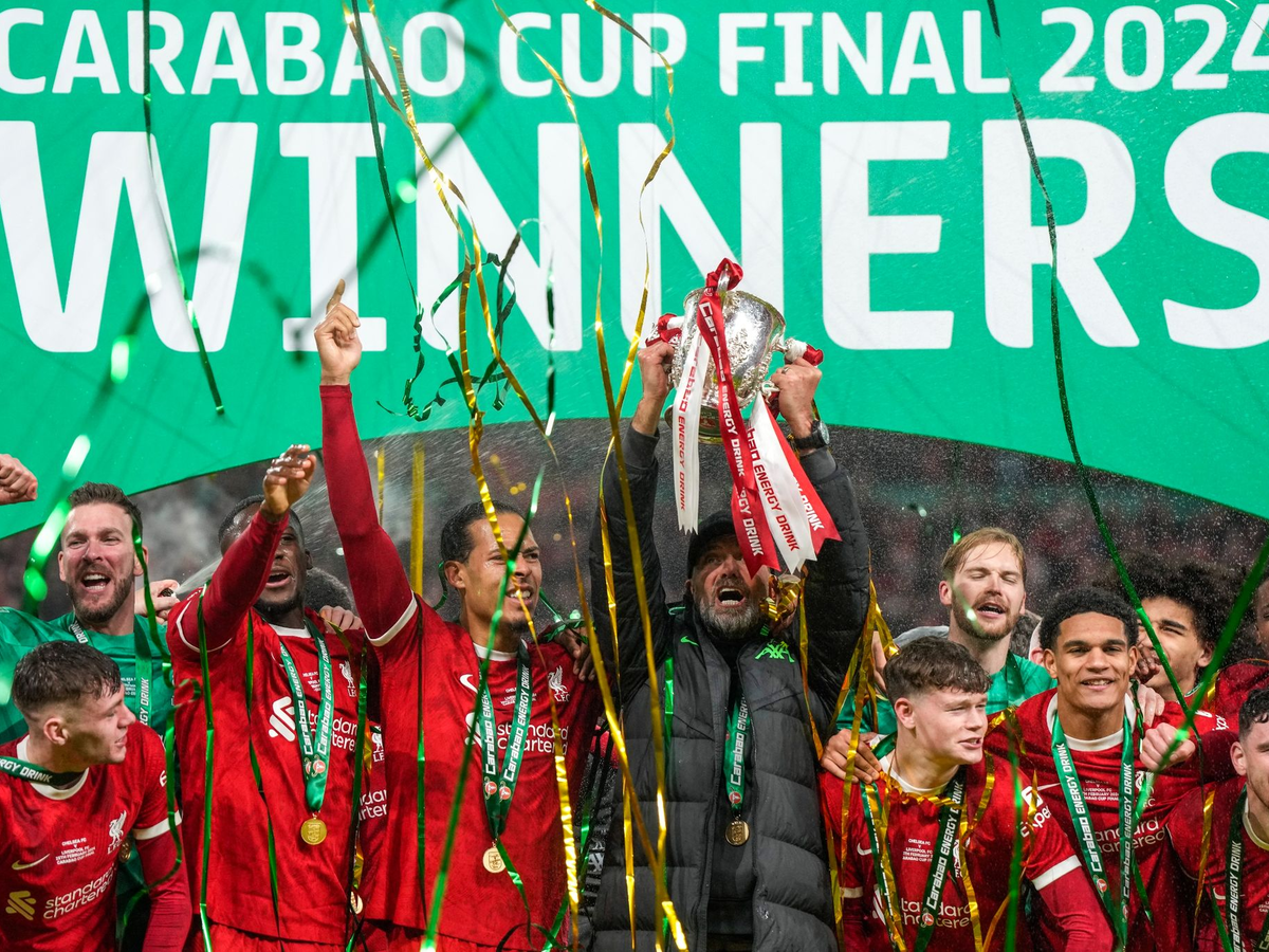 25.02.2024 - 18:50:41 | dpa.deDer deutsche Trainer Jürgen Klopp hat in seiner Abschluss-Saison mit dem FC Liverpool den ersten von vier möglichen Titeln gewonnen.