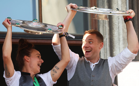 28.05.2023 - 13:45:14 | dpa.deBei der doppelten Titelfeier von Fußballerinnen und Fußballern des FC Bayern in Dirndl und Lederhosen auf dem Marienplatz jubelten tausende rot-weiß gekleidete Fans ihren Meisterteams im strahlenden Sonnenschein glücklich zu.