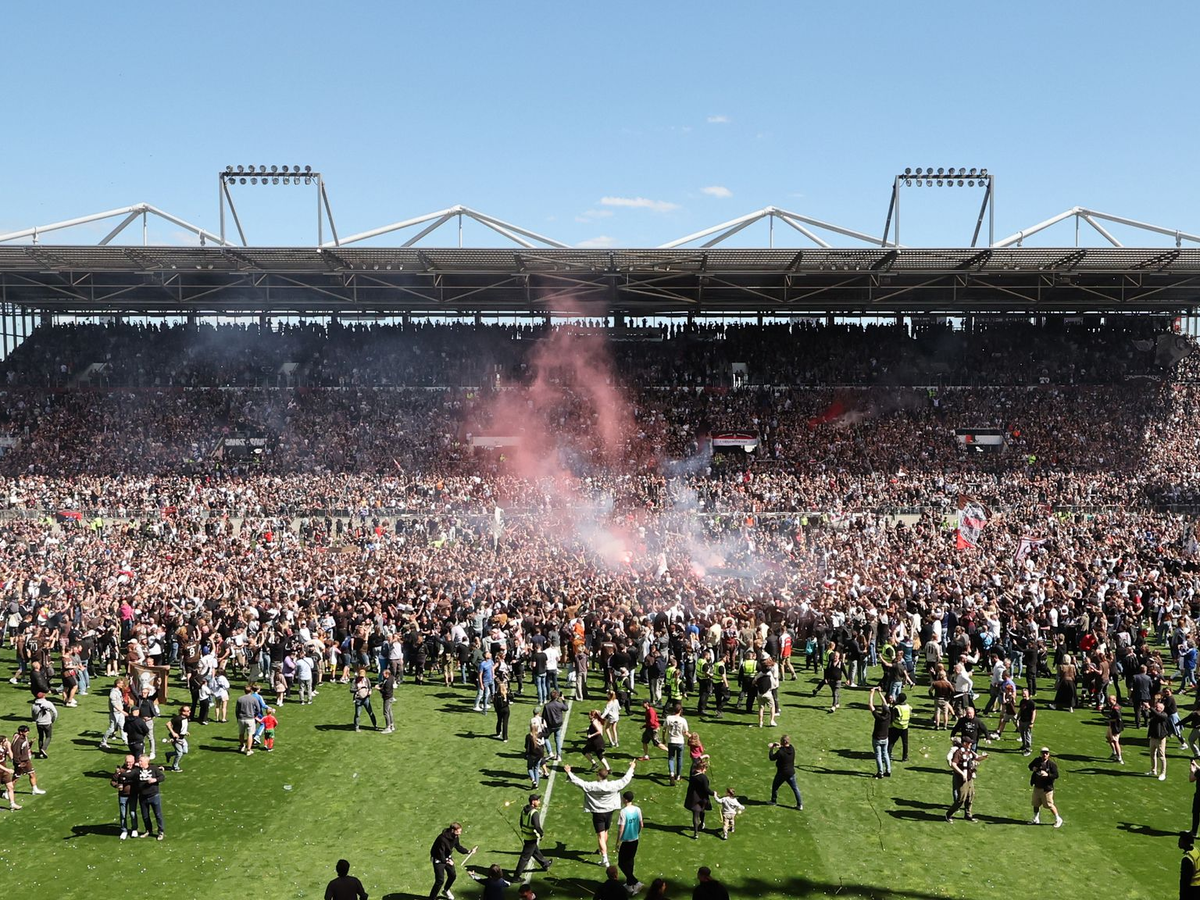 Beim FC St. Pauli begann der Tag des Aufstiegs schon mit einem Fanmarsch von rund 4000 Anhängern zum Millerntor. Im Stadion selbst hing ein Aufstiegs-Plakat mit der Aufschrift: «Im Norden geht die Sonne auf». Held des Tages war der Engländer Oladapo Afolayan, der vor 29.546 Zuschauern zwei der drei Tore schoss (7./58. Minute). Hürzeler wurde nach dem Schlusspfiff von Fans auf den Schultern getragen.