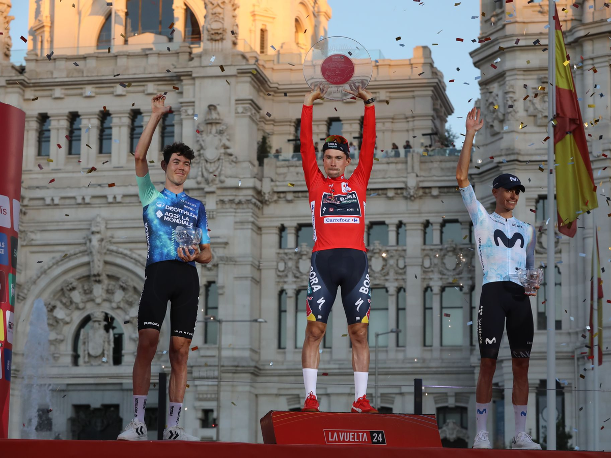 08.09.2024 - 19:35:01 | dpa.dePrimoz Roglic hat sich in Madrid zum Rekordsieger der Vuelta a España gekrönt. Nach dem finalen Einzelzeitfahren der 79. Auflage auf mehr als 24 Kilometern in der spanischen Hauptstadt triumphierte der Slowene vom deutschen Top-Team Red Bull zum vierten Mal bei der Spanien-Rundfahrt. In der Gesamtwertung liegt er mit einem Vorsprung von 2:36 Minuten vor dem Australier Ben O'Connor und dem Dritten Enric Mas aus Spanien.