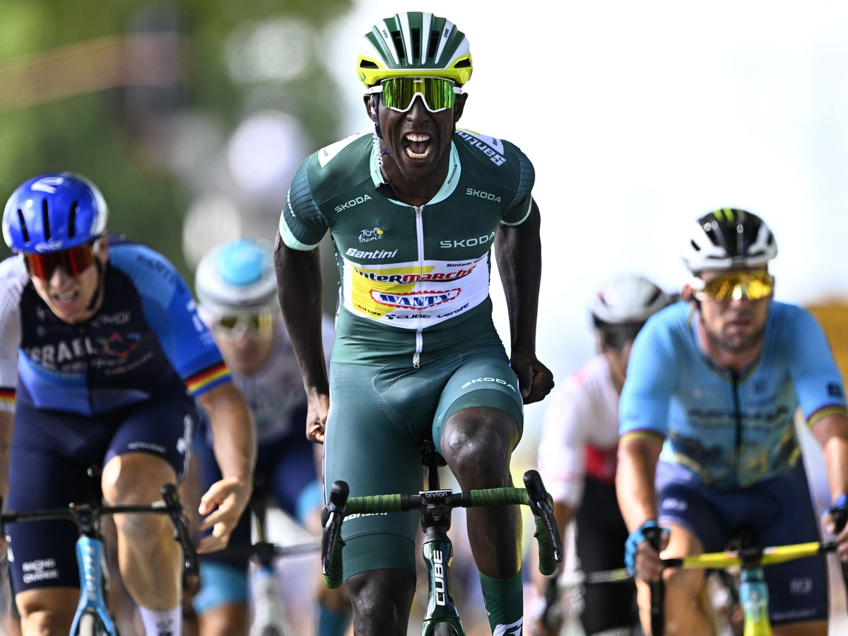 Biniam Girmay aus Eritrea hat die zwölfte Etappe der 111. Tour de France gewonnen und damit bereits seinen dritten Tagessieg geholt. Der Mann im GrĂŒnen Trikot setzte sich nach den 203,6 Kilometern zwischen Aurillac und Villeneuve-sur-Lot im Massensprint vor dem Belgier Wout van Aert und dem Franzosen Arnaud Demare durch. Der PfĂ€lzer Pascal Ackermann sprintete auf Platz vier.
