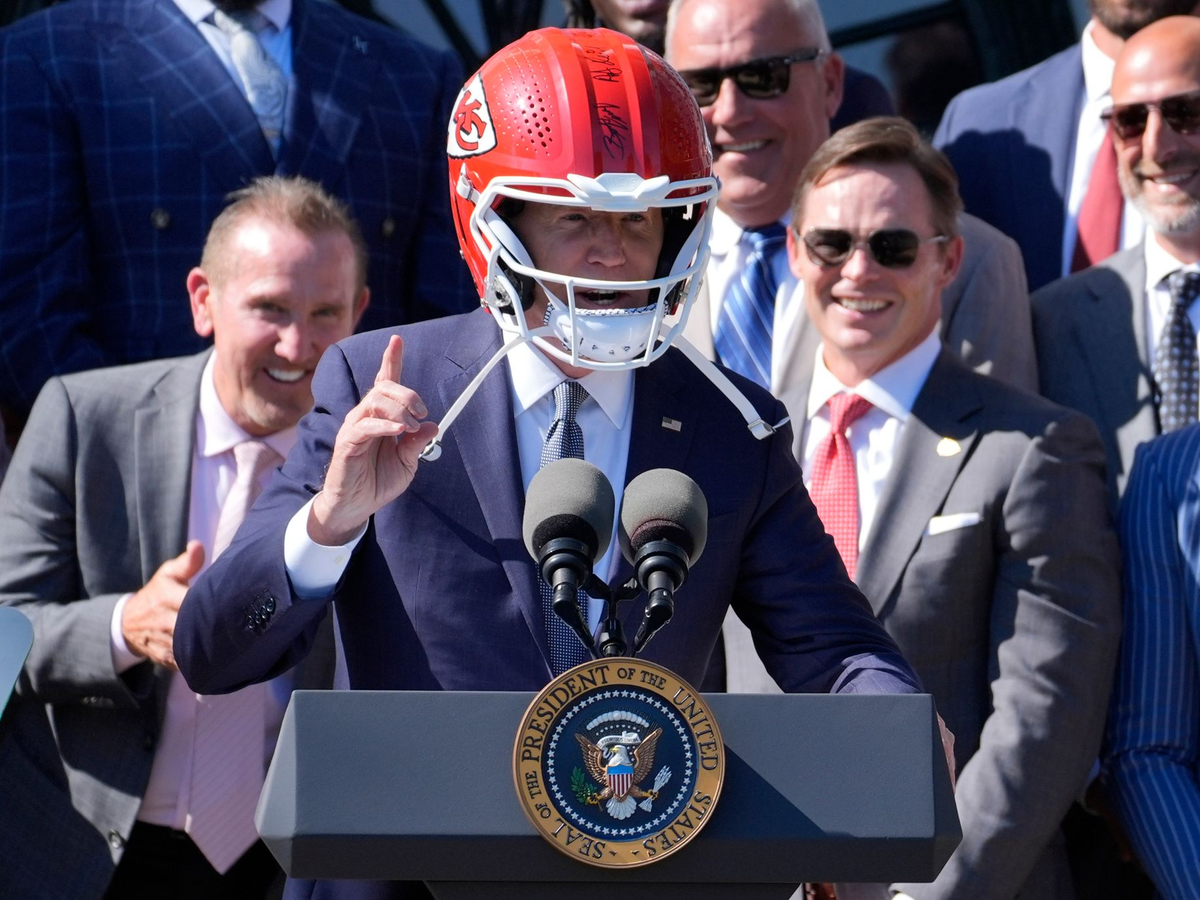 US-Präsident Joe Biden hat die Super-Bowl-Sieger Kansas City Chiefs im Weißen Haus in Washington empfangen. Der Demokrat würdigte das Football-Team als «außergewöhnlich». Die Mannschaft brachte Biden als Geschenk einen Helm mit, den der Präsident unter Johlen des Publikums direkt aufsetzte.