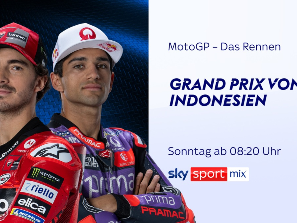 Von Freitag bis Sonntag berichtet Sky Sport insgesamt rund 18 Stunden live und exklusiv vom Grand Prix von Indonesien, dem 15. der 20 Rennwochenenden der Saison 2024. Gefahren wird auf dem Mandalika International Street Circuit auf der Lombok, der bereits bei der MotoGP-Premiere in Indonesien der Austragungsort war. Auch in den kommenden Wochen sind die Fans nur bei Sky Sport live dabei, wenn die Saison 2024 in ihre entscheidende Phase geht. Die Grand-Prix-Wochnenenden in Japan (4. - 6.10.) und Australien (18. - 20.10.) überträgt Sky Sport ebenfalls exklusiv im deutschen Fernsehen.