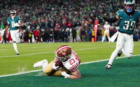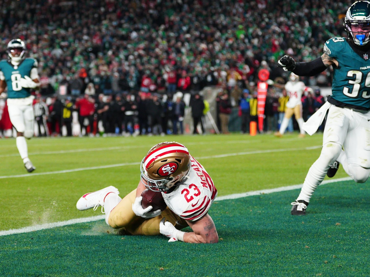 Besonders war sein erster Touchdown, der die 49ers so richtig ins Spiel zurückholte. Die Mannschaft lag zwar nie weit zurück, doch bis dahin schienen die Eagles die Partie zu kontrollieren. Ein Trickspielzug, an dessen Ende Jauan Jenkins anstelle von Quarterback Brock Purdy den weiten Pass auf McCaffrey feuerte, ermöglichte nach dem 7:0 im ersten Viertel die erste Führung. Damit war San Francisco das Team mit dem Momentum. Bitter für San Francisco: Tight End George Kittle verletzte sich im ersten Viertel an der Achillessehne. Ob er am kommenden Wochenende gegen Seattle spielen wird, ist offen.