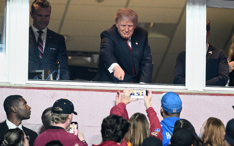 Den Jubel im ersten Viertel hatte Trump nicht live gesehen. Er war zu diesem Zeitpunkt noch nicht auf seinem Platz angekommen. Die Air Force One, das Flugzeug des US-PrĂ€sidenten, war erst Minuten zuvor im Tiefflug ĂŒber das Stadion der Commanders geflogen.Â