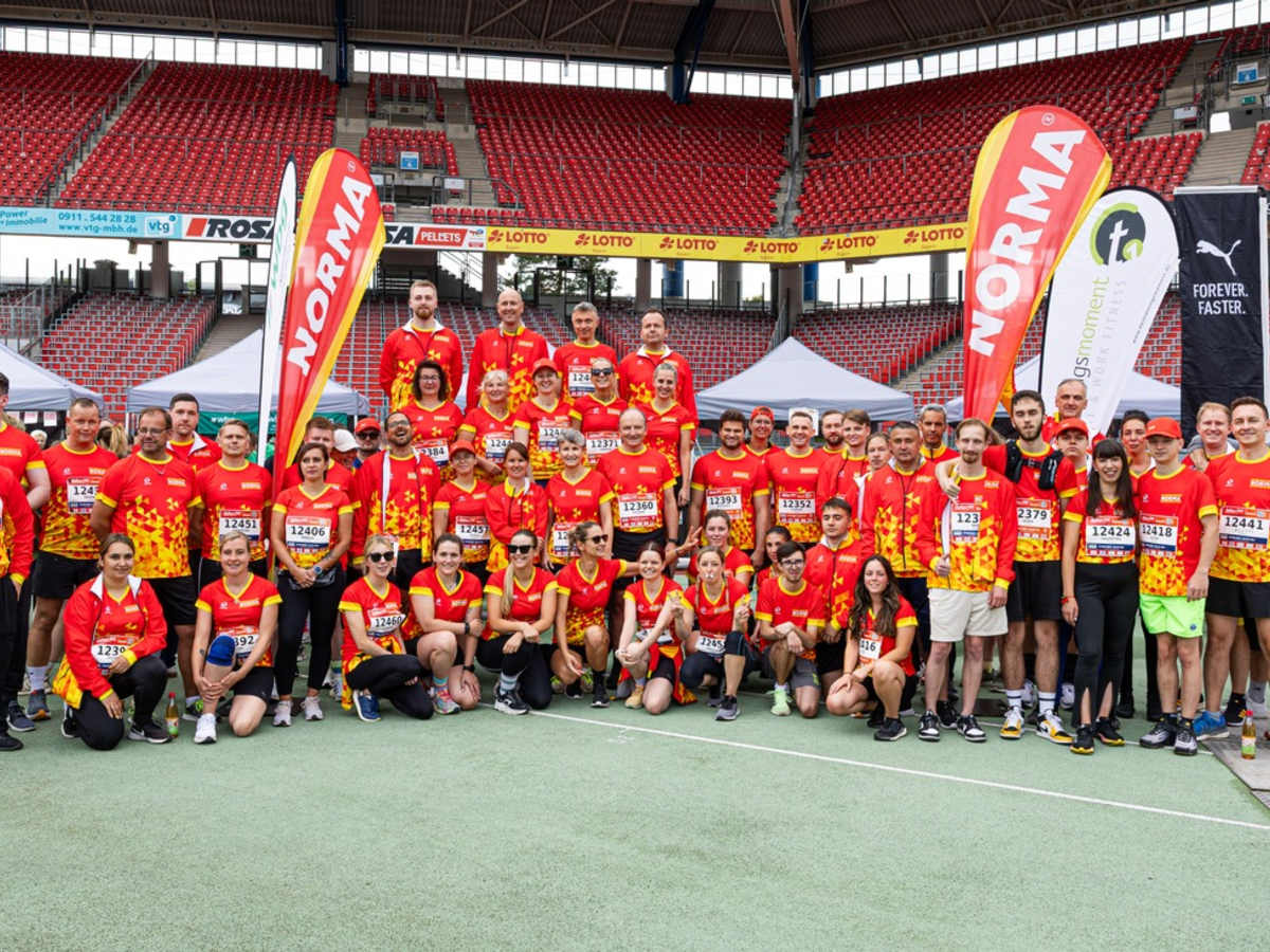 Ob Laufanfängerinnen und -anfänger oder ambitionierte Sportbegeisterte - bei NORMA zählt, dass man gemeinsam antritt und gemeinsam ankommt. Schon seit vielen Jahren ist die Teilnahme am B2Run fester Bestandteil der Unternehmenskultur. Gleiches gilt für die Unterstützung durch das Unternehmen selbst mit dem firmeneigenen Versorgungsstand im Zielbereich. Bei optimalem Laufwetter gingen die über 100 Teilnehmenden in den auffälligen roten Teamshirts gemeinsam an den Start und zeigten, dass sportliches Engagement und Zusammenhalt bei NORMA Hand in Hand gehen. Direkt im Max-Morlock-Stadion sorgte der NORMA-Stand dafür, dass sich alle Läuferinnen und Läufer nach den 6,1 Kilometern bestens erholen und miteinander ins Gespräch kommen konnten. Die entspannte Atmosphäre und der Austausch nach dem sportlichen Teil machten deutlich: Bei NORMA steht das Miteinander im Fokus.
