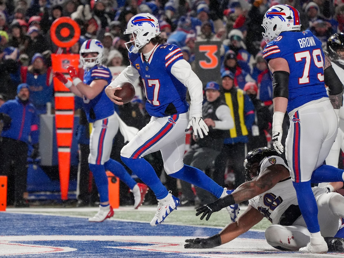 Bei Schneefall und minus acht Grad Celcius gewann Bills-Anführer Josh Allen auch das mit Spannung erwartete Quarterback-Duell mit Lamar Jackson. Jackson erlaubte sich eine Interception, Allen blieb ohne Fehlpass und erzielte zwei eigene Touchdowns nach Läufen.