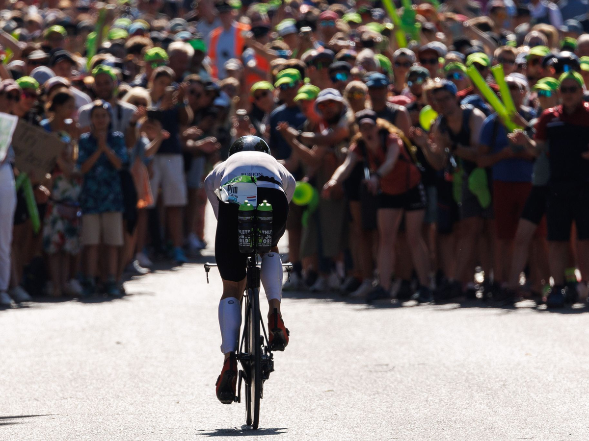 Von hinten drängte Lange. Rund 18 Kilometer vor dem Ziel zog er an Laidlow vorbei, fair klatschten beide sich kurz ab. Nun war nur noch Ditlev vor ihm, wie vor einem Jahr. Er kam aber erneut nicht ran, auch wenn Ditlev mit Blumen in der Hand in der Rother Triathlon-Arena Zuschauer abklatschte und die letzten Schritte zum Ziel mit dem Blick auf seine Rekordzeit genoss: «Das bedeutet mit sehr, sehr viel.»