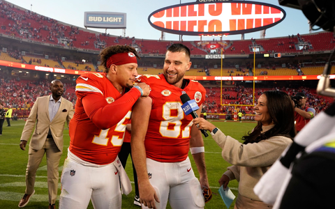 Für die NFL sind all die Schlagzeilen ein Glücksfall. Die ohnehin auf Show und Glanz ausgerichtete Liga fliegt in diesen Tagen wie ein Raumschiff in Deutschland ein und errichtet eine sportliche Parallelwelt, die hierzulande Millionen Menschen mit riesigem Interesse verfolgen. Lovestorys, Gerüchte und Privates der Hauptprotagonisten um Mahomes und Kelce sind dabei mindestens genauso viel wert wie der Sport an sich.