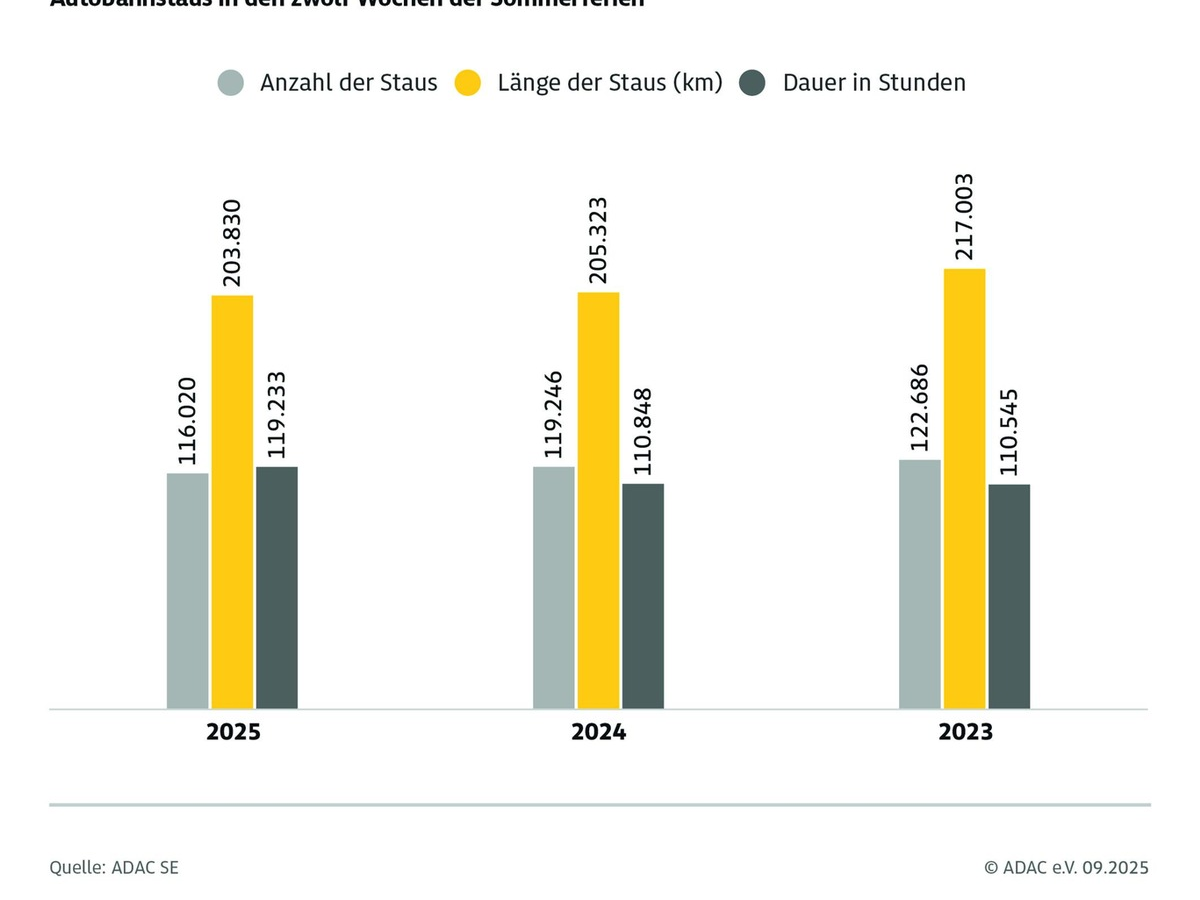 ADAC Sommerstaubilanz 2025 / 3.000 Staus weniger als in den letzten Sommerferien / Staureichstes Wochenende Anfang August