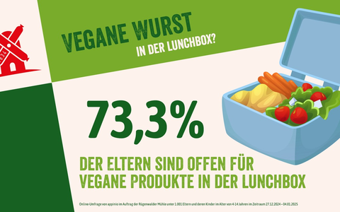 Eine Frage, die in Millionen Familien täglich diskutiert wird und ein Stressthema ist: Was kommt in die Lunchbox? Ob Kita oder Schule - das Pausenbrot ist ein Dauerbrenner in Familien. Viele Eltern plagt die Sorge: "Wird mein Kind satt? Isst es überhaupt? Und ist der Brotbox-Inhalt eigentlich gesund?" Das Umfrageinstitut Appinio hat dazu jetzt im Auftrag der Rügenwalder Mühle Kinder im Alter von 4 bis 14 Jahre und ihre Eltern gefragt. Ein Ergebnis: Vegane Alternativen erobern deutsche Brotdosen!