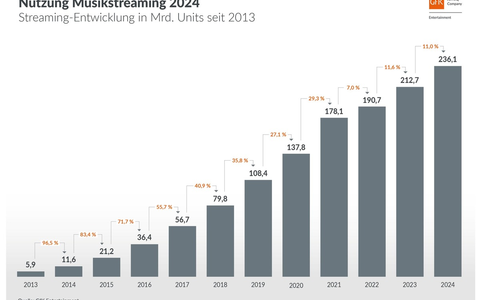 Abrufzahlen der Plattformen zeigen: Nutzung von Musikstreaming nimmt weiter zweistellig zu || Über 236 Milliarden Streams im Jahr 2024