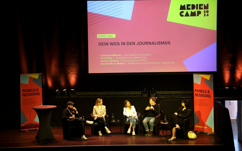 Wieder einen anderen Weg in die Branche fand Tom Kölm, Programmchef von Radio Fritz. Er brachte sich in jungen Jahren als Arbeiterkind selbst Radioschnitt bei und bewarb sich dann mit seinen Schülerradio-Proben bei großen Medienhäusern. Und das klappte. Dass auch ein Psychologie-Studium in die Branche führen kann, zeigt Kathrin Welsch. Die Personalleiterin von RTL 2 ermutigte, sich auch auf eine Stelle zu bewerben, wenn nicht alle Anforderungen erfüllt seien und in der Bewerbung authentisch zu bleiben. Moderiert wurde die Runde von Frederik von Castell, Chefredakteur des "medium magazins".