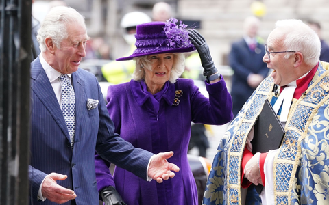Nach ihrer Berufung in den Orden im Vorjahr erschien Queen Camilla an der Seite ihres Ehemanns Charles im Umhang des Ordens und mit der typischen Feder auf dem Hut. Thronfolger Prinz William und Charles' jüngster Bruder Prinz Edward waren als Mitglieder ebenso anwesend wie die früheren Premierminister John Major und Tony Blair.