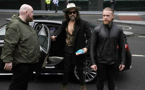 Brand erschien gewohnt flamboyant gekleidet mit weit aufgeknöpftem Hemd mit Tigerfell-Muster und einem beigefarbenen Hut und Sonnenbrille vor dem Gerichtsgebäude. In der Hand trug der frühere Comedian eine Bibel mit vielen Notiz-Zettelchen.
