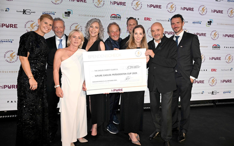 Auch EAGLES-Präsidentin Anke Huber zeigte sich bewegt vom Ergebnis: "Ich bin sehr stolz auf die Summe, die wir in 32 Jahren gesammelt haben. All das wäre ohne die Unterstützung von großartigen Förderern wie unserem Hauptsponsor hiPURE, Pfenning Logistics, die die gesamte Eventlogistik übernehmen, unserem Bekleidungs-Ausstatter FALKE, sowie Hochwarth IT, Cabero Wärmetauscher, ERL Immobilien, Luisa Cerano und der BSS Group für die Technik nicht möglich."