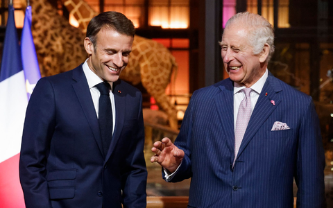 Bei dem Staatsbesuch stand für den König auch ein Gespräch mit Frankreichs Präsident Emmanuel Macron auf der Tagesordnung. Neben den französisch-britischen Beziehungen tauschten sich die beiden zur Lage im Sahel und in der Ukraine aus. Macron hatte Charles und Camilla bei einer Empfangszeremonie mit militärischen Ehren am Pariser Triumphbogen willkommen geheißen. Gemeinsam mit Charles fuhr er im offenen Wagen über die Prachtmeile Champs-Élysées. Im pompösen Schloss Versailles richtete er mit seiner Gattin Brigitte ein Staatsbankett mit geladenen Stars und verlesenen Speisen für die Royals aus.