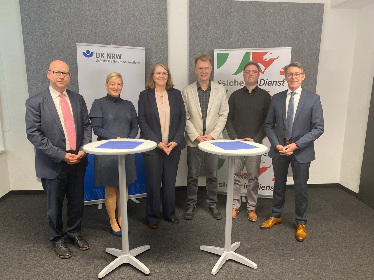 16.11.2023 - 16:02:21 | presseportal.deAuf Einladung des Präventionsnetzwerks #sicherimDienst begrüßte die Moderatorin, Dr. Beate Eulenhöfer-Mann, Schulleiterin des Berufskollegs Dieringhausen in Gummersbach, dazu eine Expertin und vier Experten aus der Verwaltungspraxis sowie Polizei und Justiz im Medienstudio der Unfallkasse Nordrhein-Westfalen in Düsseldorf. Gemeinsam mit der Moderatorin und anhand der Fragen aus dem Publikum beleuchteten das Thema aus ganz unterschiedlichen Perspektiven, zum Beispiel aus Sicht von Beschäftigten und Führungskräften sowie aus Organisationssicht.