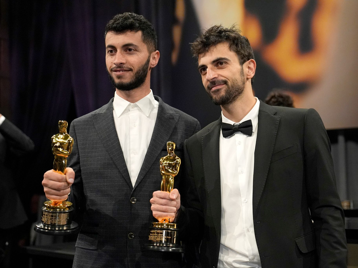 Die Regisseure Basel Adra und Yuval Abraham nutzten die BĂŒhne in Los Angeles, um auf die Situation in ihrer Region hinzuweisen.Â