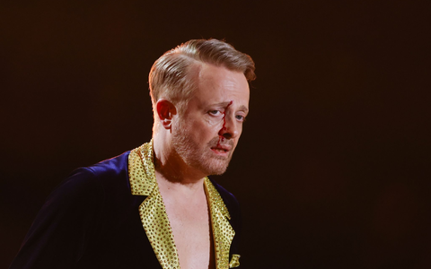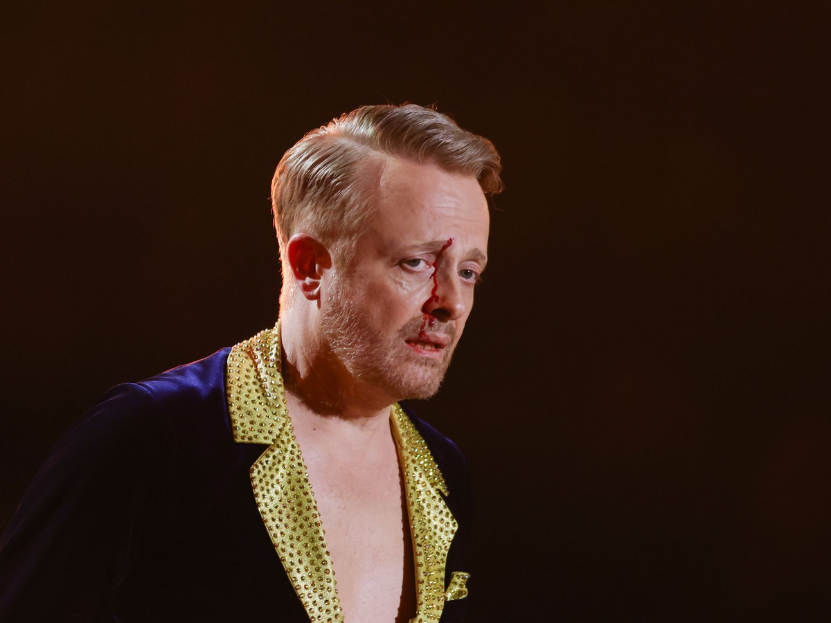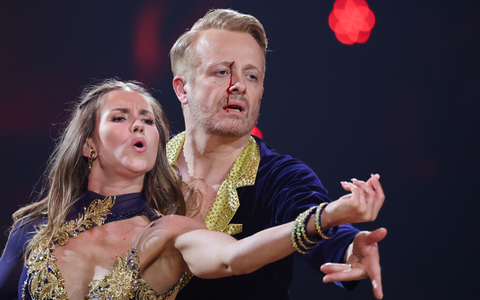Tapfer tanzte Ross Antony weiter - trotz seiner Verletzung.  - Foto: Rolf Vennenbernd/dpa Nach dem Tanz kam sofort Hilfe, um das Blut abzutupfen. - Foto: Rolf Vennenbernd/dpa Ross Antony war sichtlich gezeichnet, nahm die Sache aber mit Humor. - Foto: Rolf Vennenbernd/dpa