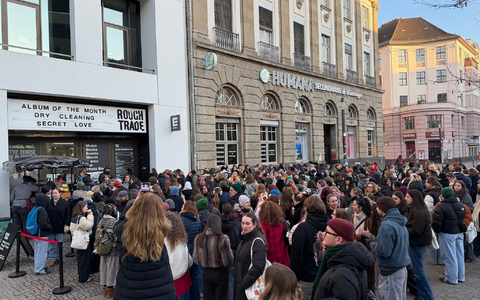 Lange Schlange vor Plattenladen in Berlin
