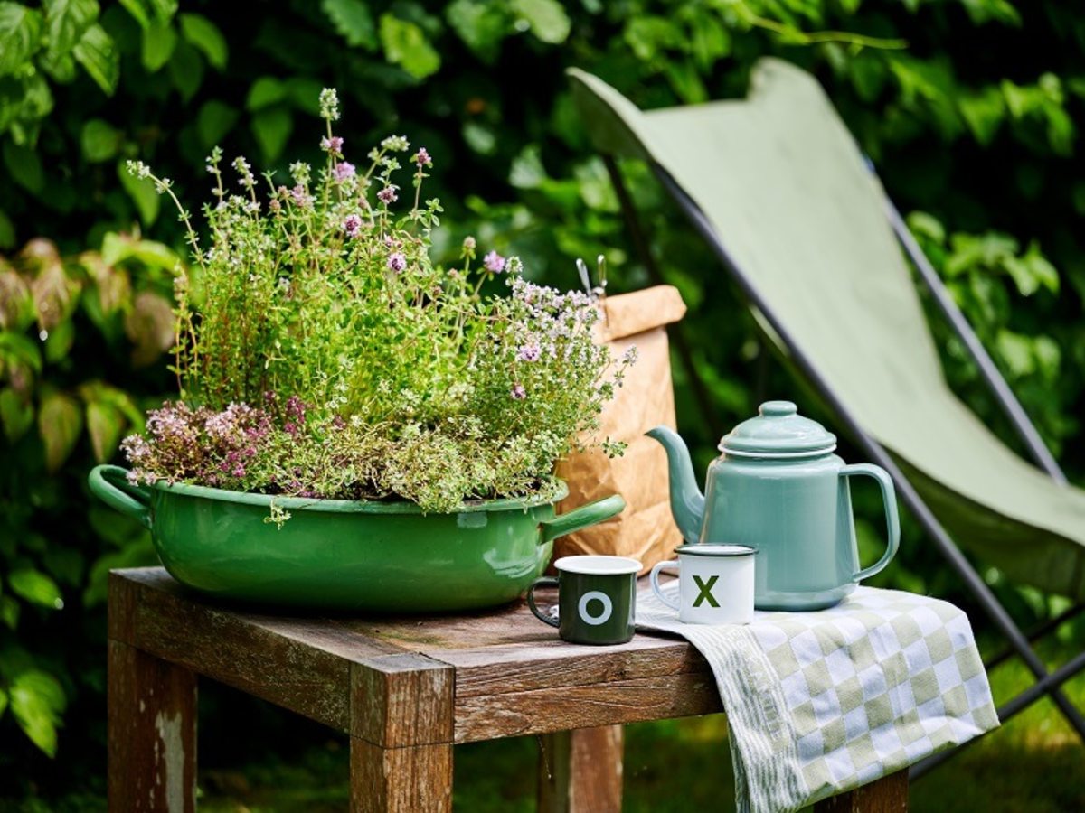 Kräuterpflanzen wie Thymian, Salbei und Rosmarin sind an Sonne und Trockenheit gewöhnt. In den Sommermonaten blühen sie üppig und bereiten damit nicht nur Menschen, sondern auch Bienen eine Freude. Für einen rustikalen Look einfach eine niedrige Schale oder einen ausrangierten Topf mit mehreren Kräutern bepflanzen. Da die Pflanzen den deutschen Winter nicht scheuen, können sie auch bedenkenlos einen Platz im Beet einnehmen. Sie sind mehrjährig, wodurch sie uns jedes Jahr aufs Neue mit ihrem Duft im Outdoor-Bereich oder als Ernte für die Küche erfreuen.