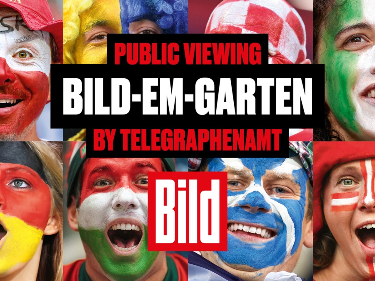 Claudius Senst, CEO BILD-Gruppe: "Inmitten von Berlin laden wir ab dem 14. Juni in einmaliger AtmosphĂ€re zum Public Viewing im BILD-EM-GARTEN BY TELEGRAPHENAMT ein. Inmitten der Hauptstadt wollen wir den Fans bis zum Finale der Europameisterschaft hier einen Raum fĂŒr ein echtes SommermĂ€rchen geben. Wir freuen uns auf begeisternde Begegnungen in allerbester FuĂball-Laune."