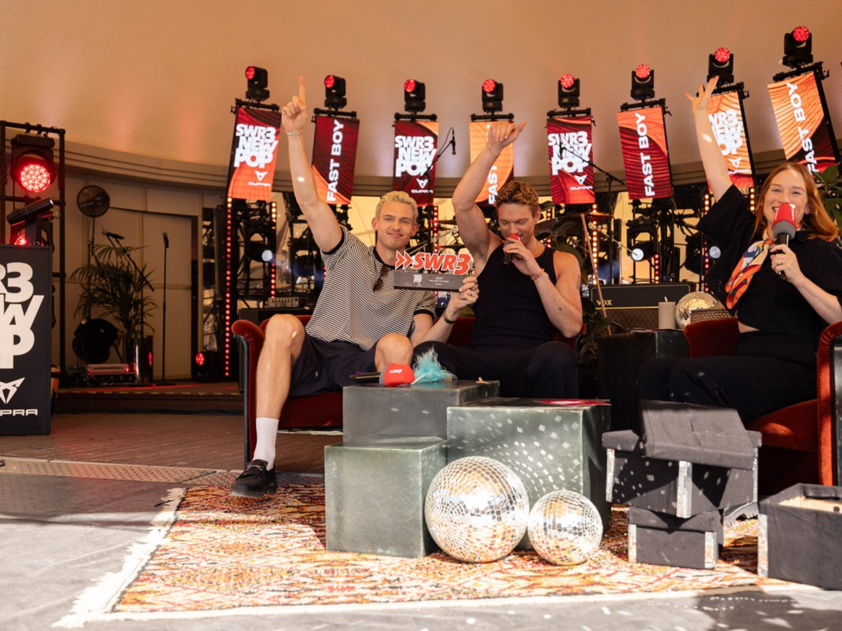20.09.2025 - 15:50:21 | presseportal.deAm Samstagabend tritt das deutsche Dance-Pop-Duo Fast Boy im Rahmen des "SWR3 New Pop Festivals" im Festspielhaus in Baden-Baden auf - bereits am Nachmittag wurde ihnen eine besondere Ehre zuteil: Während eines Interviews mit SWR3 Moderatorin Sabrina Kemmer auf der Open-Air-Bühne vor dem Kurhaus überraschte sie die beiden mit dem "SWR3 New Pop Award".