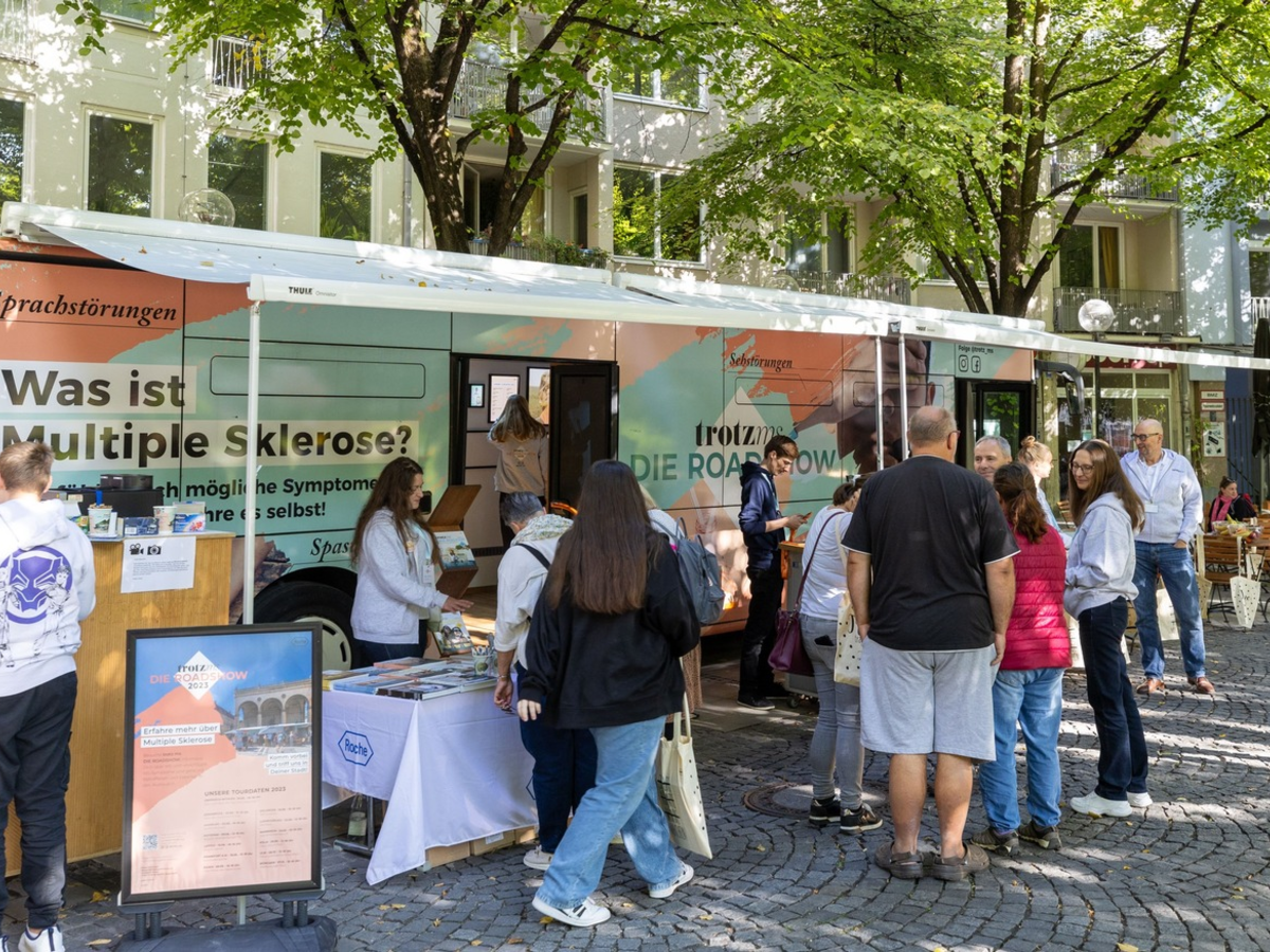 Um einige der MS-Symptome erlebbar zu machen und zu zeigen, welche Auswirkungen die chronische Nervenkrankheit MS auf die Betroffenen hat, tourt der MS-Roadshowbus der Kampagne trotz ms vom 30. August bis zum 12. Oktober durch Deutschland. Angehörigen und auch Interessierten wird dort verständlich vermittelt, wie sich die Erkrankung anfühlt. Im Inneren des Busses finden sich dazu mehrere Stationen, die die unterschiedlichen Symptome von MS, wie Gang- und Gleichgewichtsstörungen, spürbar machen. Die Stationen wurden speziell von einem Team aus MS-Fachkräften und MS-Patient:innen entwickelt und sorgen dafür, dass Besucher:innen am eigenen Körper spüren können, wie sich MS-Symptome auswirken und anfühlen. Insbesondere Symptome, die nicht auf den ersten Blick erkennbar sind, stehen dabei im Mittelpunkt. Daneben soll auch der Austausch nicht zu kurz kommen: In persönlichen Gesprächen mit Betroffenen und medizinischem Fachpersonal vor Ort können alle Fragen der Besucher:innen offen und ehrlich beantwortet werden. Auch Betroffene sind herzlich dazu eingeladen, dem Erlebnisbus einen Besuch abzustatten und sich mit anderen Betroffenen zu vernetzen, über hilfreiche Tipps auszutauschen und aus einem gemeinsamen Erfahrungsschatz zu profitieren.
