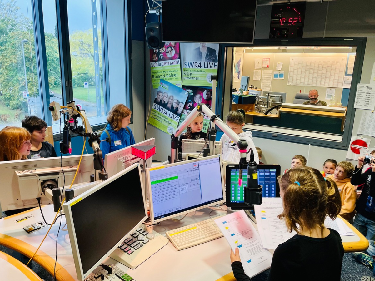 Eine Sendung, die fast alle Kinder kennen, ist der "Tigerentenclub". Umso mehr Spaß macht es den Klassen, die "Tigerentenclub"-Hörspielshow als Podcast selbst zu produzieren. Die SWR-Technik liefert Quizelemente, die Schülerinnen und Schüler übernehmen die Moderation und schlüpfen in die Rolle von Studiogästen. Der fertige Podcast darf als Erinnerung mit nach Hause genommen werden. Die Produktion findet im SWR4-Studio statt, in dem auch alle Fragen rund ums Thema Radio beantwortet werden. Die nächste Station ist das SWR1-Studio, wo die "Dschungelkinder" live bei einer Sendung dabei sind.
